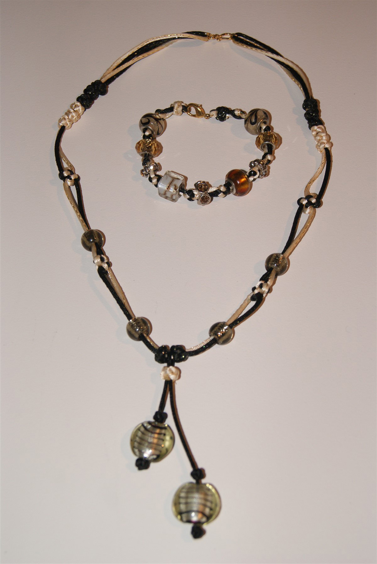 So I ended up with a lot of different glass and rhinestone beads separated by Cross knots. I really like the result and love to wear this one, alone or with its matching necklace.