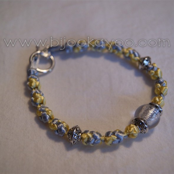 Blue/White Stone – Light Peach/Ivory Spiral Macramé